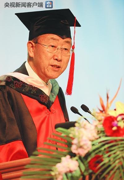 这是2010年南京大学授予联合国前任秘书长潘基文名誉博士学位。(资料图片)