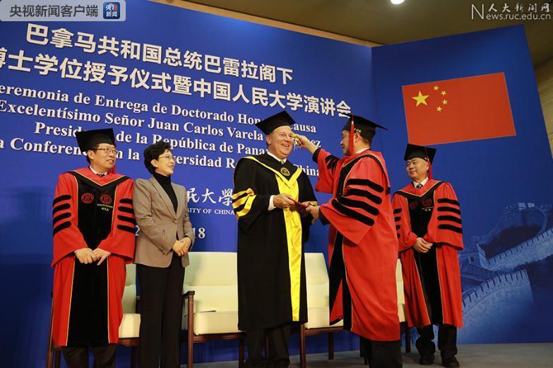 这是2017年中国人民大学授予巴拿马总统巴雷拉名誉博士学位。(资料图片)