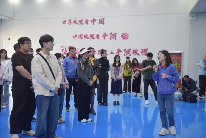 巡访团首先抵达华玫生物科技有限公司,这是一家集优质种植、产品深加工、产品销售、OEM/ODM代工及旅游观光于一体的一二三产业融合发展企业。团队在工作人员的指引下,学习了解玫瑰在我国的悠久历史和产业发展历程,参观厂区标准生产车间,品尝体验鲜花饼、玫瑰花茶、玫瑰精华等玫瑰系列产品,享受折扣购物。大学生体验官们漫步在芳香扑鼻的玫瑰园中,在专业摄影师的镜头下,与缤纷烂漫的各色玫瑰同框合影。